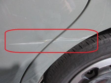 ▼ 左スライドドアとクオーターパネルに擦り傷がありました。