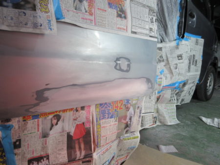 塗装の前に、塗装面の足付けと塗装面の油汚れやワックス分をしっかり落とす脱脂を行います。