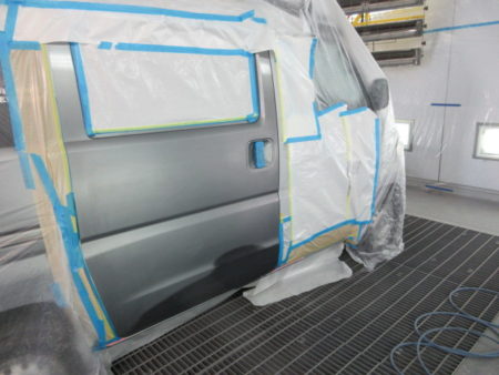 ▼ 車を塗装専用ブースに移動して塗装をします。
