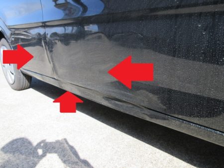 ▼ フロントドア、リアドア及びロッカーパネルの傷をアップで見た時の状態です。