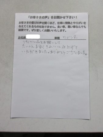 ※ こちらのお客様の修理感想はこちら ⇒スズキ・ワゴンR