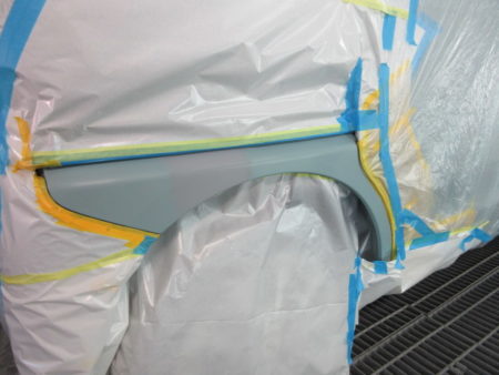 ベテランの塗装職人により現車の色に合わせた調色をし、ベースカラー塗装⇒クリア塗装の順で塗装をしていきます。