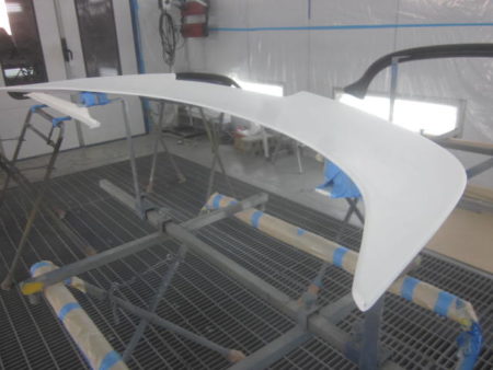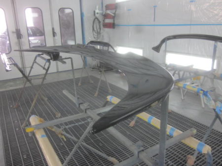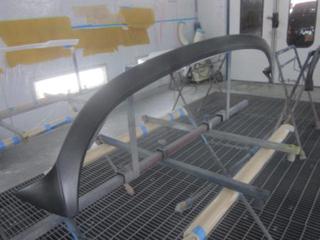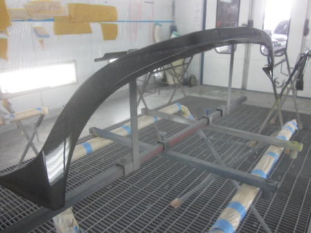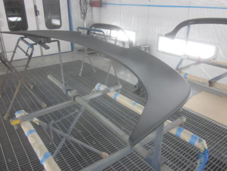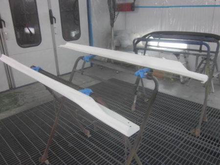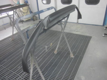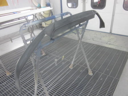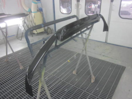 ▼ 社外エアロの塗装を行って行きます。それぞれに単体で塗装専用ブースにおいて塗装をします。