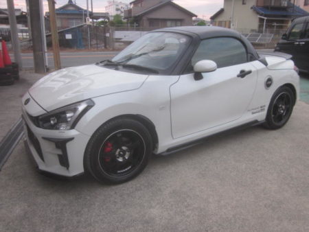 江南市よりダイハツ・コペン(色:パールホワイト)の社外エアロ取りつけのご依頼です。