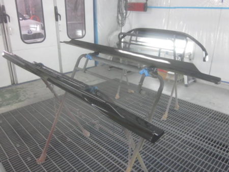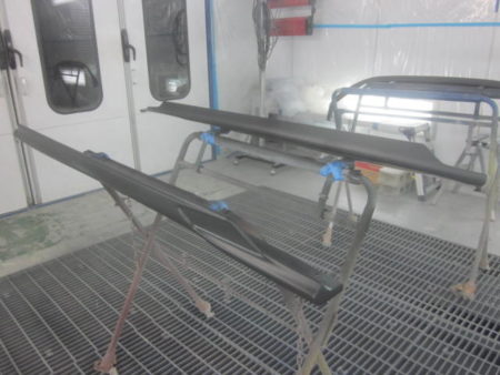 ベテランの塗装職人により調色が行われベースカラーをそれぞれのパーツに満遍なく均一に塗装を行って行きます。