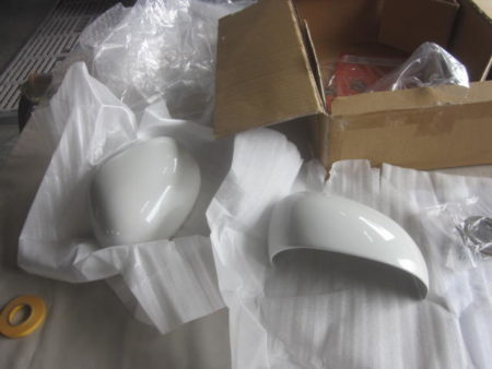 ▼ サイドミラーについてはブラックのミラーがついてますが取り外してホワイトミラーに取り換えます。