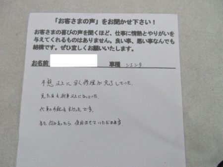 江南市の鈑金修理をしたお客様よりご感想を頂きました!