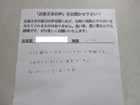 この度は、ご入庫頂き誠にありがとうございました!(^人^)感謝♪